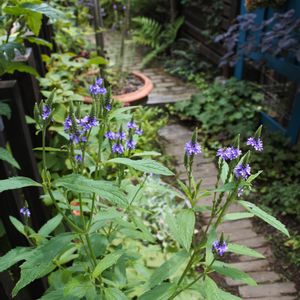真夏の庭で特に元気なのは 三尺バーベナとバーベナハスタータの背高コンビ。 地表から遠くて熱の影響を受けにくいのも 関係しているのでしょうか。 特にこのバーベナハスタータはもりもりで 初夏の頃のシュッとした姿とは別人のよう。 どちらも風に揺られて 涼やかな風情を見せてくれています。
