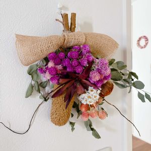 千日紅やユーカリなどのドライで、スワッグを作りました💐