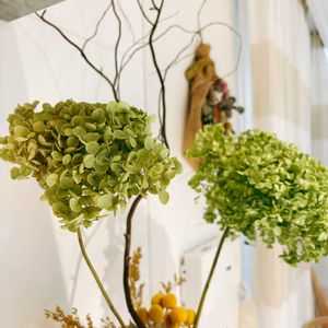 庭のアナベルがドライになりました💚🤍💚 そのまま花瓶に挿したり、スワッグやリースにします💐