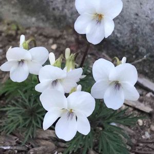 ♡♡ヒゴスミレ♡♡ 裏の父から貰ったスミレ✨ こぼれ種でたくさん増えてくれた🏡 背丈の低い可愛い子だけど 花壇に真っ白の花って 意外に目立つのよね〜 この時期、お気に入りの花です💕