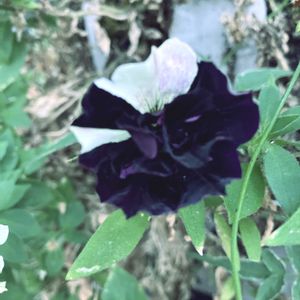 先程投稿した ハイドランジア'ブラックナイト パープル' の全体像です☾* とってもお洒落なシックカラーのアジサイです🖤緑から深紅に移り変わる様子やパープルの花が目を惹きます.✽.。