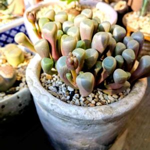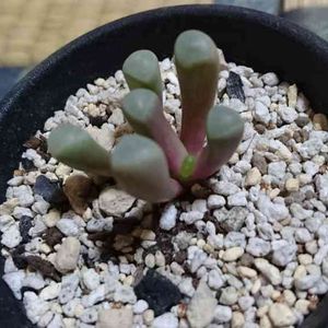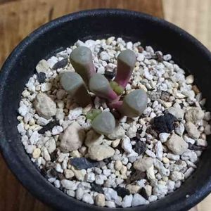 おはようございます。 今朝も冷えてますねー。 昨夜、ベビートゥの窓の部分のシワがお水を上げても取れないので思い切って掘り起こし! したら、ダメ元で横に植えてた、おまけで8月16日に頂いた子が根をはやして新芽もつけてた!😨 到着した時は一股というのか対の二本の足だけで、水耕したり腰水したりしたけど発根しないので親の横に植えてたけどピンク色やしアカンやろなーと思ってたら!株分けする勇気が出ましたわー。 んで、おっきい方は根は特に問題なさげだったけど根がつまりかけてたのでちょっと土を足した感じー。 でしばらく様子見かな。