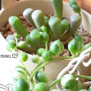 五十鈴玉と斑入りグリネのコラボ♡ 五十鈴玉は、何本か葉っぱが枯れてしまい さみしい感じになってたけど 新葉がニョキニョキ出てきたよ!! グリーンが爽やかだ💚💚💚
