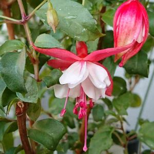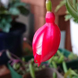 フクシア🌱エンジェルスイヤリング💕 今朝のベランダ☔で今にも弾けそうな大きな蕾を見つけました:*(〃∇〃人)*:
