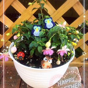 こんばんは〜😊 フクロウ🦉祭り♡参加させていただきま〜す(❁ᴗ͈ˬᴗ͈)ペコリ。:.゚ஐ⋆* フクシア 花言葉…「信じる愛」 「つつましい愛」 ん〜🤔 愛には、あまり縁がない…😭 サントリーさんの、エンジェルスイヤリングちゃん♡ 可愛く咲いてきてくれました♡ (((*♥д♥*)))カッカワイスギルッ💕 自己満足です…😅 ꉂꉂ(ᵔᗜᵔ*)あはは