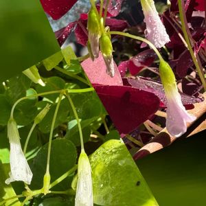 母から株分けでもらってきた🤲🏻 イモカタバミの白いお花が咲いた🤍 こっちも母から株分け🤲🏻 オキザリス 紫の舞 かわいく伸びてます(^^)♡ ④⑤どちらも夜になると 葉っぱをぺったんこに折りたたんで寝るところが またかわいいね
