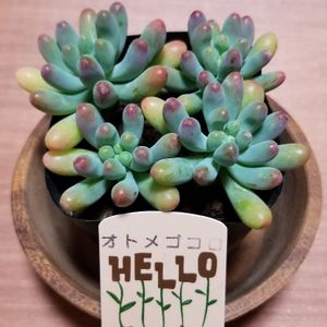ハロウィン用のカップに入れるために300円くらいで買った多肉植物です。 オトメゴコロって札がありましたが、二種類生えててどっちがどっちかわかりません…。