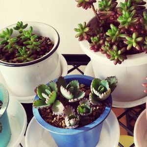 右端のエンジェルティアーズ錦の花🌸が咲きました(´˘`*) 乙女心はのびのびでしわしわだったのを仕立て直ししたものが、 ぷっくり可愛くなってきました๓´˘`๓♡ 下に見えるのはカランコエ🌱ラッキーガール🐰♩ みんな元気♪*°♡