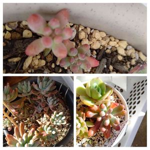 エケベリアの全身紅葉も良いが、セダムの先っちょピンクも良い。 (多分)乙女心。 セダムはベランダ軒下で冬越しさせてみるかな。 エケベリア、センペルビウム、クラッスラ辺りもベランダ軒下(2階)にするつもり。 そんなに軒下ありましたっけ?(;´∀`)