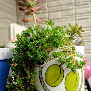 お気に入りのマグカップの取っ手が壊れた時に、適当に投げ入れた寄せ植えです。 暴れ放題だけど、なんか一体化してる‼️