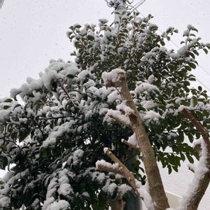 にゃーこ家の「クロガネモチ」と昨日の空です😆 雪国になりました❄️ 「すってんころりん」しないように気を付けましょう😌💕