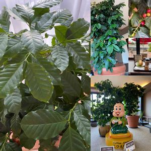 おはようございます☺️ 今日のお花「コーヒーの木」です💕 左はにゃーこ家の木(先ほど撮影) 右は時々行く足湯カフェのコーヒーの木(過去pic)
