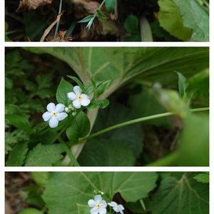 ツルカメバソウ (蔓亀葉草) かな… ムラサキ科キュウリグサ属 5~6月 7~20cm 日本固有種 絶滅危惧ⅠB類 ムラサキ科ですね🩵😊 花は直径約1cm、白色に近い淡青色でした。 葉は互生し葉身は卵形、長さ3~5cm、幅1.5〜2.5cm。先は鋭頭、基部はやや心形~円形。下部の葉には長い葉柄がある。 葉が亀の甲羅を連想させることが亀葉草の名の由来だそうです😊 茎は斜上して1個の花序を出します。 花茎は倒れ.花序直下 の葉腋から走出枝が 出ます。 花冠は5裂し.花筒の上部に黄色っぽい 付属体があります。 今回初めて見かけたのですが、比較的稀な種類なのだそうです。 全体にやわらかく優しい雰囲気の娘でした🥰