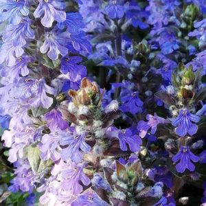 朝日に輝く十二単(じゅうにひとえ) キラキラのアジュガ