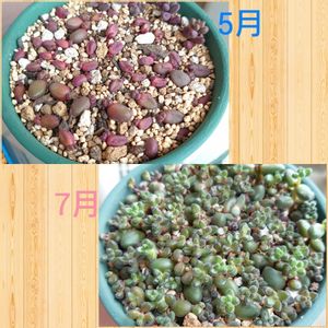 おはようございます☆ 3月に始めた玉葉丼計画が順調です(*•̀ᴗ•́*)و ̑̑ 途中経過です✨ 上、芽が出始めた5月✨ 下が今✨ 葉挿しっ子を更に✂️して挿して、また更に✂️を繰り返し\( *´ω`* )/ だいぶ増えてきました♡ しぶーい紅葉の玉葉丼が楽しみ✨