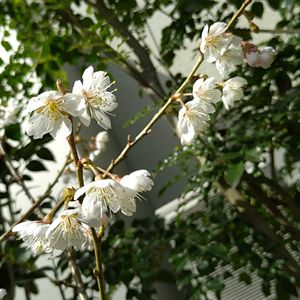 暖地さくらんぼの花 先日1つ2つ咲いてた花が満開に近い位咲き乱れてるよ 植えて2年目だから無理はさせたくないけど今年初の初めての実だから親孝行で実をつけて味わってみるよ 河津桜みたいに早咲きなのにビックリ(@_@;)