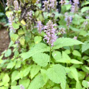 今日のお花🏷️シソ・・・科の子たちは有用植物がたくさん(☆∀☆)キラーン! ①カワミドリ。漢方薬になるらしい ②ヒメハッカ。めちゃ小さ〜い。爽やかな香り ③シソ。コレコレ紫蘇ですよ ④オオバ。アオチリメンジソというらしい ⑤エゴマ。イモムシじゃないよ 2024年09月21日📸東京薬科大学薬用植物園
