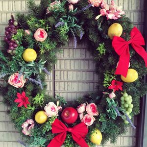 おはようございます! テストが終わって久しぶりに畑に行ってきました‼️ みんなどれも大きくなってたな〜😚 ところでもうすぐクリスマスですね! うちも毎年イルミネーションを庭にやるのですが、今年は弟の受験があり、 忙しくてなかなか😅 でもなんとかリースだけは飾れました😂 元来リースは豊作の願いを込めたものとされてきました。なのでうちのリースは果物が沢山💦僕のお気に入りです笑 クリスマスカラーには一つづつ意味があります。(学校がキリスト教系の学校なので授業の受け売りです😅) 緑はふゆでも生い茂る常緑樹で、永遠の命を意味します。 赤はイエス・キリストが十字架で流された血。すなわち神の愛を表しています。 金はイエス・キリストが誕生される際に異邦人の学者が見つけたベツレヘムの星。すなわち救世主の降誕を表します。 これをうちのリースに当てはめると赤はリンゴ🍎緑はブドウ🍇金色はレモン🍋 なかなか個性的なリースとなりました(笑)