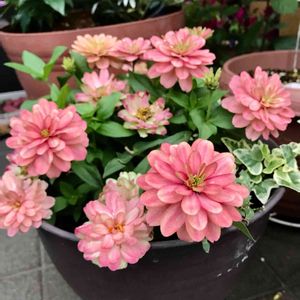 おはようございます☀️ 寄せ植えを作りました🌸 ジニア、ニチニチソウ、ディコンドラを寄せています💕🤍💚 今日も熱中症にお気をつけてお過ごしください😊