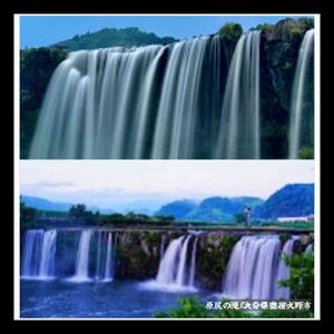 【思い出の滝シリーズ⑥:原尻の滝編】《日本の滝百選》 📝この写真画像は、大分県豊後大野市にある「原尻の滝」で、大分県百景の一つにあげられている名瀑です。 幅120メートル、高さ20メートルを誇り、9万年前に起きた阿蘇山の大噴火の大火砕流によってもたらされたこの滝は、のどかな田園地帯に突如滝が出現するというその珍しい環境も見どころデス🐶 約9万年前の阿蘇山の噴火によってできた「原尻:はらじりの滝」は、別名「東洋のナイアガラ」と呼ばれている絶景スポットです。 周辺には、遊歩道、吊り橋、河原など、さまざまな角度からダイナミックな滝を見られるスポットが満載です。 また、近くには冷たいスイーツを味わえるショップもあるので、気軽に散策などで楽しむのもイイかな⁈ 小生は臼杵市に所用で出張していた際の休日に、地元の知人に案内してもらいましたデスら😺 「東洋のナイアガラ」と聴いていたので、たいそうに期待して行きましたが、🇨🇦カナダのトロントに居た際に、現地の「ナイアガラの滝」を観ていたので、つい比較して見てしまい、滝のスケールとしては本家のナイアガラの滝には及ばないもので、小ぶりであったので少々期待ハズレでしたが、この写真のように風光明媚な所なので、それなりにたくさんの写真を撮りましたデス🐶 🗒️大分県の人々には申し訳ありませんが、この後に続いて投稿しますので、どうぞ比較してご覧くださいマシ)^o^( ✍️Works:Poetaster Kazyan//筍歌人:藪中和堂 Artistic:Harajuku falls//Kazyan’s Collection May 17,2023:past am 06:50';upload by Kazyan’s Green Studio