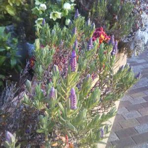 冬を越えて、咲いてきたフレンチラベンダーです☺朝日に照されてキレイ✨