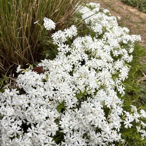 真っ白な芝桜、ピンクも植えたけど、数年経って残ったのは白 晴れた日はキラキラ輝いています。