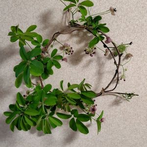 アケビのリースを作ってみました。 カワイイ😍と思ったら、数時間でしおれてしまいました😭 アケビのリースって保存が効かないのかな?? 悲しかったです…😢 床の間にも飾りました。 お花の画像2枚は、一昨年のものです。 今も満開なのですが、時間がなく撮れませんでした💨 アケビは1日でもあっという間にツルが伸びて、近くの木などに巻いてしまうので、落ち着くまでは管理が大変です😓