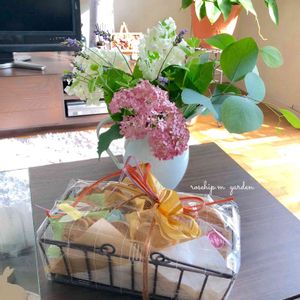 안녕 . . 今日は久しぶりに息子が帰宅… 彼女を連れて💦 . . 美味しそうなお茶菓子頂きました(^-^) . . 部屋にはアナベルをカットして飾りました