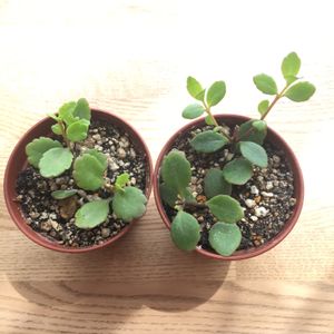カランコエ シャンデリアの パープルとオレンジのカット苗❣️ カット苗しか無かったのです💦 どっちがどの色か 咲かなきゃわかりませんよ〜! 種類同じなのに 葉の形が 違うな〜〜❣️❓