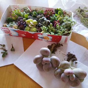 ポチり狩り到着📦 写真用にちょっと手直ししたけど、開けた瞬間 ひっくり返ってるわ、飛び出してるわ、折れてるわ… 雑な梱包で届いてバラバラになってた多肉ちゃん達( ; ; ) 早く寄せ植えしてあげよう。。。
