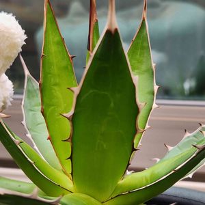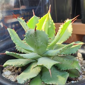 こんにちは😄 エアコンが故障してしまい、本日修理に来ていただいたのですが。。。 『奥さん!外にあるあの子はアガベですか⁉️』 といきなり🤣 そぉーですよ😁とお話をしましたら、最近、知り合いから1株プレゼントして貰ったら、気になって仕方がないとのこと🤣 この方、沼にはまりますね🤣 と、言うことで、久しぶりに登場の姫雷神ベッキーさん😊💗 雷神さんのオレンジのトゲトゲ🎶 可愛いっ(*^^*)💕 さっ、お買い物行ってこよっと💦 ※エアコンは基盤が★らしく修理費が嵩むらしいです😅 やだ、まだ買って三年!しかも21畳用💦自動お掃除、空気清浄機能とフルで付いてるのに。。。 修理費の方が絶対に安いですね😅