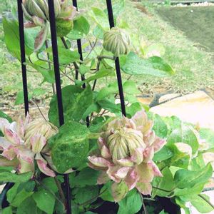 蕾のうちから夢のようなアンティークカラーのクレマチス春姫