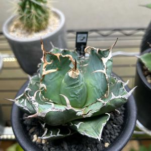 アガベ チタノタ 白鯨 迎えてしまった〜 LEDライトがないから、もうこのボールの形は維持できないかなー? まん丸くて可愛いのだが…