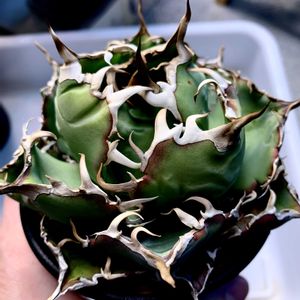 おはようございます🌿 アガベ・チタノタ 白鯨 いまの形が好きなのでゆっくり生長させたいです 今日もよろしくお願いします☕