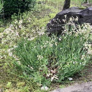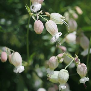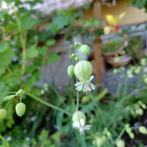 シラタマソウ 少しボケ気味ですが、風船の先に白い花びらが開いているような可愛いらしいお花です。 別名シレネ・ブルガリスだそうです🍀