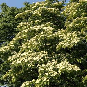 こんばんは☪️ 暑かったですよ😰 今日の花 🌼ヤマボウシ🌼 今月の6月3日のpic 青空に映えてるヤマボウシがきれいです🌼☘️🌼☘️