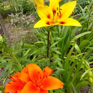 こんにちは✨ 朝は雨でしたが、蒸しっとした暑さですよ😰 黄色とおレンジのユリがきれいでした🧡💛🌿