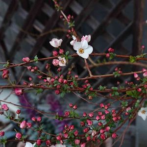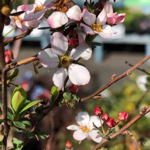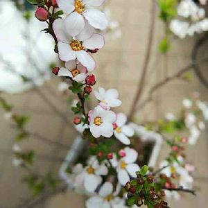 ピンクユキヤナギのフジノピンキーの蕾がほころんできました💕 明日は19度になるそうなのでお花たちもびっくりでしょうね⁉️