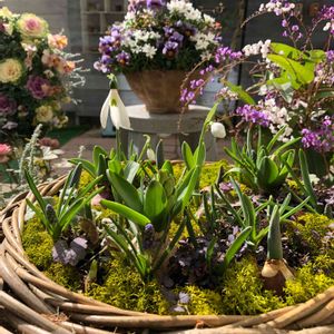 11月に、初めて「ブリコラージュフラワー」のフリーレッスンに参加して作った作品です。(作った直後に、そのショップで撮りました😁) 寄せ植えの1つの技法というのかな?作り方が変わっているので、数年前からチャレンジしてみたかったのです。 今はカレックスのお花がくすんできているので、入れ替えしようかなと思っています。