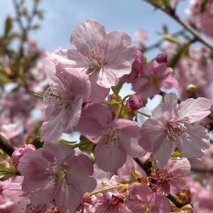 カワヅザクラ バラ科サクラ属 落葉亜高木 日本固有種のオオシマザクラとカンヒザクラの自然交雑から生まれた、日本原産の栽培品種のサクラである。 一重咲き、4〜5cmの大輪 花期2〜3月 ソメイヨシノで有名なあけぼの山公園では、ソメイヨシノが老木になったためか、新しくカワヅザクラが数本植えられていた。 🏷️木曜日は木に咲く花 🏷️木曜日は桃色 に参加させていただきます。