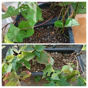 今年も植えます🍠💕 メネデール水に浸けて根っこ出てきたので そろそろ畑👩🌾 🫑🍆🍅も一緒に植え付けだな💪