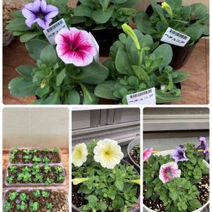 今年は ノーブランド78円のペチュニア🌸 に挑戦💪 黄は単色植え 紫と赤で混色植え 挿し芽用にピンチもしました!