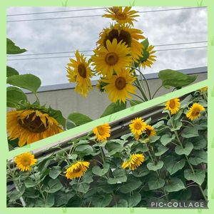 背の高い向日葵が🌻たくさん咲きました。 毎朝の通勤のお楽しみ💕 一本にたくさんの向日葵からはパワーを感じます😊