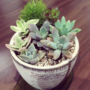 初めて寄せ植えをしてみた୧⃛(๑⃙⃘⁼̴̀꒳⁼̴́๑⃙⃘)୨⃛ なかなか難しいものですね◟̽◞̽ ༘* 触るたびに葉がパキパキと…:;(∩´﹏`∩);: