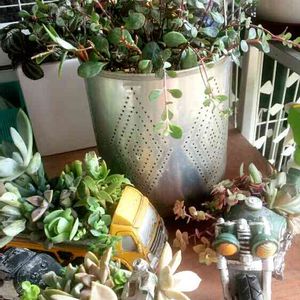 テキトー寄せ植え 七福神もそろそろ落ち着いたかな 根っこで始めたかな❓ 子宝草もボキッと折って 置いただけ すごい色になってるけど 数ヶ月こんなかんじ。 枯れてないはず笑 レモータここで増えるかなぁ〜〜