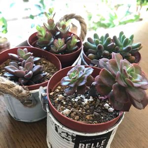おはようございます(´∀`*) 先日連れ帰った中で紅葉している子たち🍁 色が戻っちゃうかもしれないので 植え替え前の状態でアップしました✨ 手前の紅日傘は、エケベリア属だけど木立ちなんですね👀 期間限定の色合いを楽しもうと思います ( ˘͈ ᵕ ˘͈ )