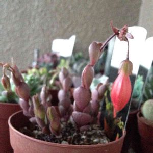 こんなに可愛い花が咲くのね💕💕😃 赤い花の咲く多肉植物が欲しくて、真冬に我が家にやって来た紅提灯さん。 あっと言う間に成長して、春の暖かさで期待以上のぷっくり提灯をぶら下げてくれました🍀✨ 多肉は、お花も楽しみですね😆💦
