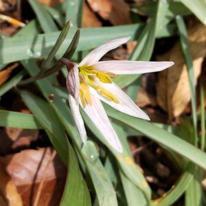 目黒自然教育園の散策♪ 🤍ヒロハノアマナ🤍 ユリ科 🌱アマナに比べて葉が広く中央に白い筋があります お天気が悪いと花はあまり開きません