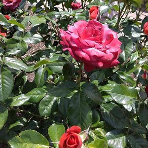 ぎふワールドローズガーデンのブラックティ、先日、大野町から迎えた新苗もこんな立派になれば良いのですが、何年かかるのか?