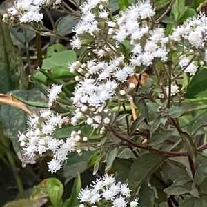✨✨ユーパトリウム チョコラータ✨✨ 銅葉に 白いふわふわのお花が お庭をシックにしています🎶 メガネ露草に絡まれ 乱れて咲いています💕